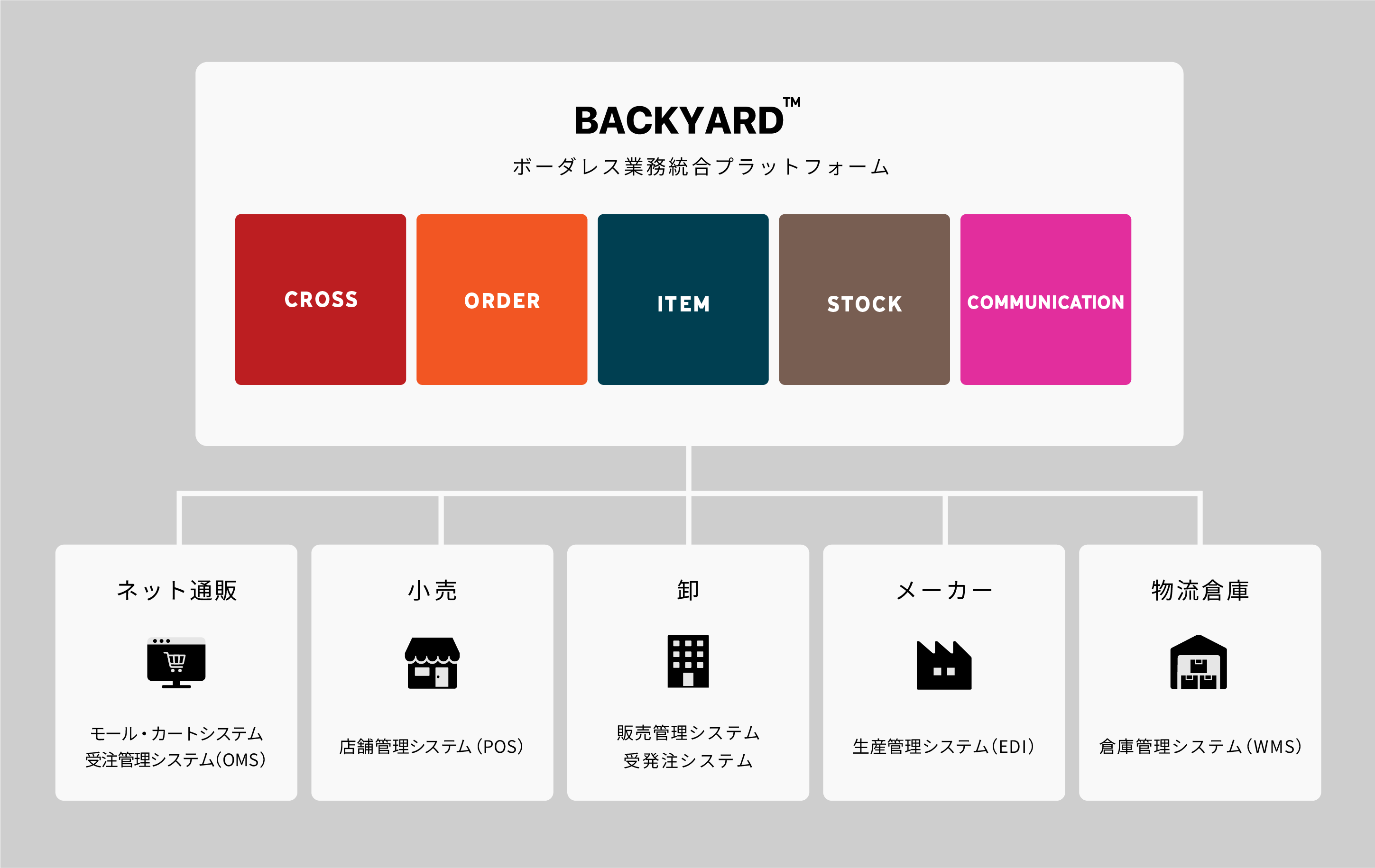 「BACKYARDTM(バックヤード)」は、EC・小売・卸などの業態を超えたボーダレスなバックヤード業務一元管理プラットフォームです。