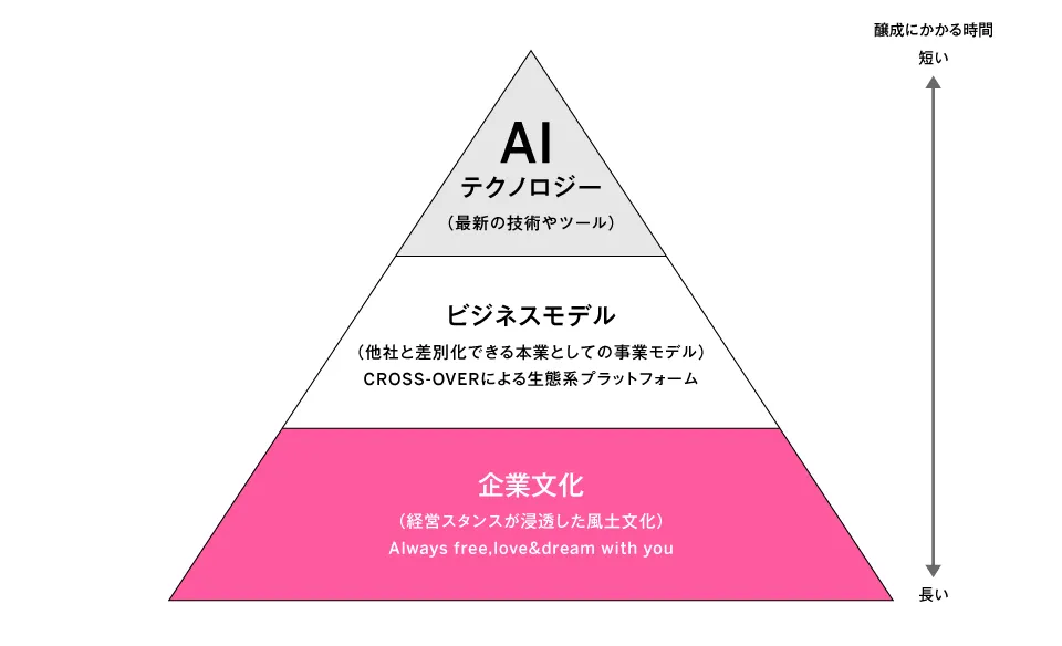 AI技術やツールなど最新のテクノロジーは、他社と差別化でき、本業として確立しているビジネスモデルと、企業としてのスタンスやミッションが浸透し、時間をかけて文化を醸成した企業風土があってこそ、最大限活かすことができると確信しています。