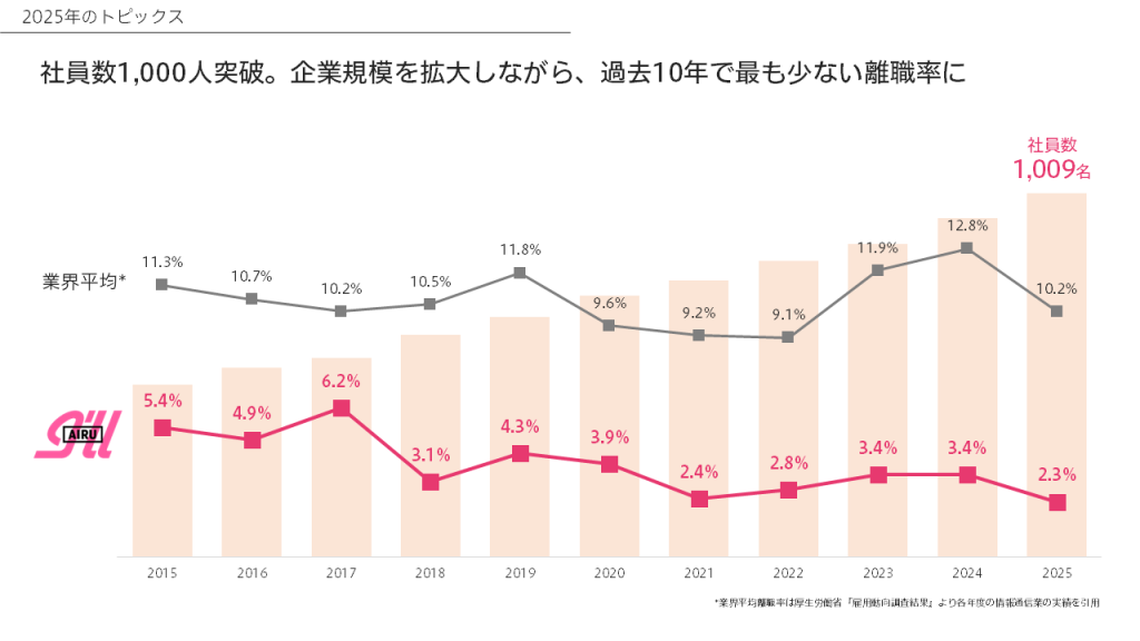 当社は2026年で、創業35周年を迎えます。現代表の岩本が仲間とワンルームマンションの1室で立ち上げてから、昨年で社員数は1,000人を超え、2本社と1支社、開発ラボの4拠点を展開し、リーマンショック以降業績を大きく落とすことなく、事業成長に邁進しています。