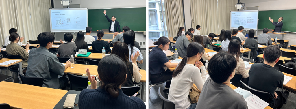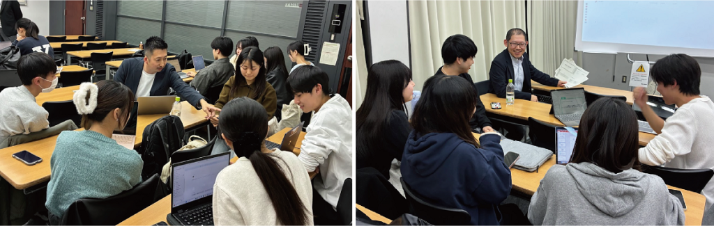 本プロジェクトでは、当社がもつ企業や市場の課題、現場の声、開発・提供ノウハウをもとに、2025年9月の初回授業、同年11月の中間報告会と、講義や課題の講評、議論をしてまいりました。